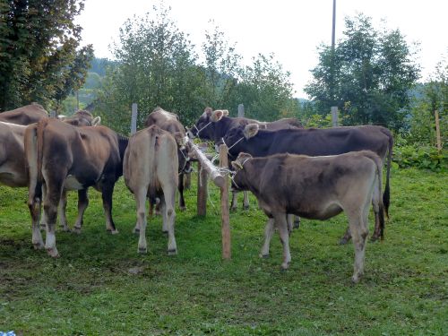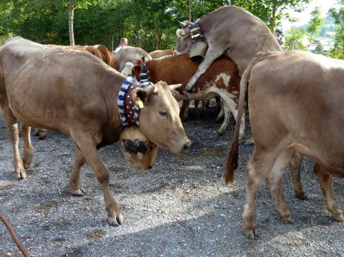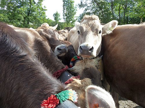 In den Gattern müssen die Kühe nun von ihren großen Schellen befreit werden