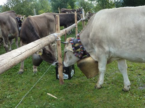 10 Kilo wiegt so eine Schelle, und ich glaub die Viecher sind froh, wenn sie die Dinger endlich los sind.