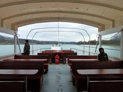 und dann überlegen wir, ob wir gleich nach Lügde zum Feuerräderlauf fahren und dort auf dem Parkplatz bis 21:00 rumsitzen, oder lieber hier das blöde Wetter aussitzen. Wir entscheiden uns hierzubleiben und machen ein Brunogassi am See entlang. Dabei hören wir, dass der Dampfer die Maschinen anwirft, und ruckzuck entschließen wir uns zu einer Rundfahrt. Irgendwie müssen wir ja den Tag rumbringen.
