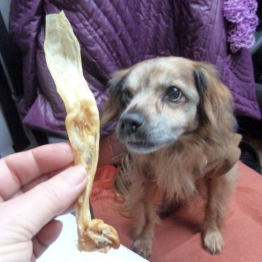 Um 8:00 ist Peter schon wach und übernimmt das Morgengassi im Neuschnee. Nach dem Frühstück kommt der Osterhase, Bruno kriegt ein getrocknetes Hasenohr