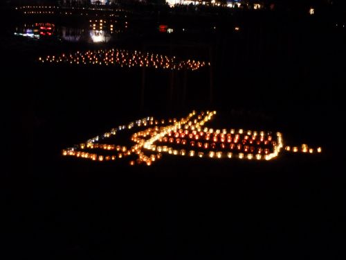 Die Häuserreihen links und rechts der Straße sind bunt beleuchtet, am Bach entlang sind Fackeln und Kerzen aufgestellt, der Jahrmarkt ist total überfüllt. Es herrscht Ausnahmezustand hier.