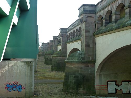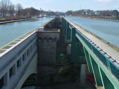 Und hier ist die Kreuzung. Unten fließt die Weser unterm Kanal durch.