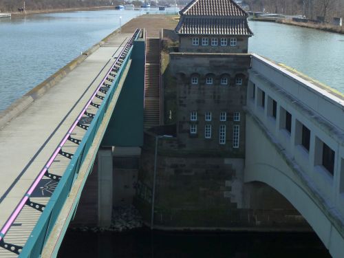 Nun müssen wir auch noch die Schachtschleuse sehen, über welche die Schiffe aus der Weser in den Mittellandkanal einfahren.