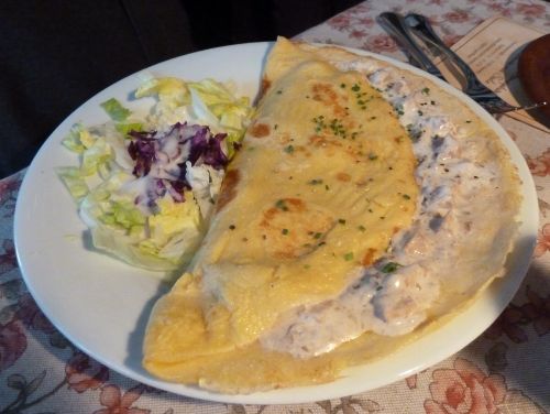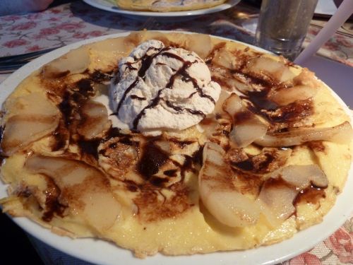 Nun haben wir genug alte Häuser gesehen und stärken uns in einem Pfannenkuchenhaus.