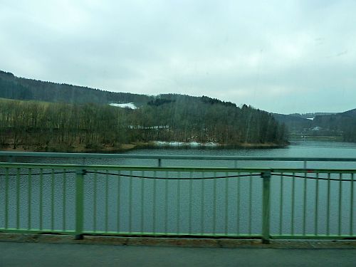Jetzt fahren wir weiter zum Biggesee. Man fährt dabei an mehreren Staustufen vorbei. Der See erstreckt sich über verschiedene schmale Seitenarme, wobei das Wasser der einzelnen Täler gestaut wird und so ein total verzweigter Stausee entsteht.