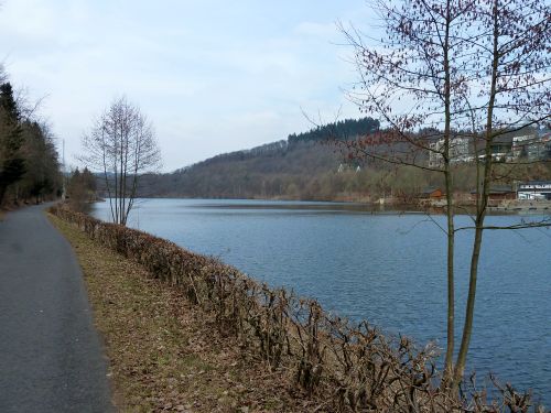 In die Stadt ists nicht weit, und nach der anderen Seite ist man in 5 Minuten am Biggesee. Dort machen wir ein Hundegassi hin. Bruno hat noch immer blutigen Durchfall und nach ein paar Metern drehen wir um und bringen unsren schlappen Butzel ins Womo. Er kann nicht mehr.