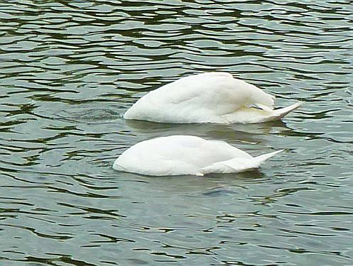 und hier sehen wir einen stolzen Schwan, und zwei kopflose. Von denen gibts hier jede Menge.