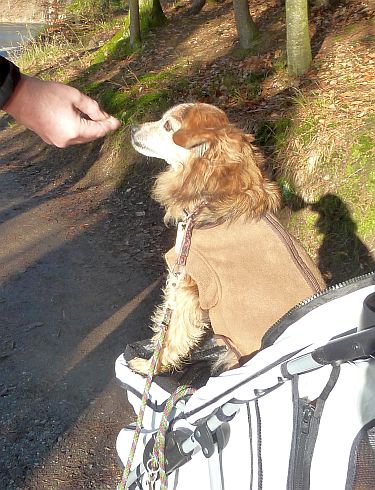 Jetzt rüsten wir zu einem Spaziergang. Bruno ist recht fit und läuft die halbe Strecke.