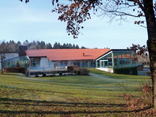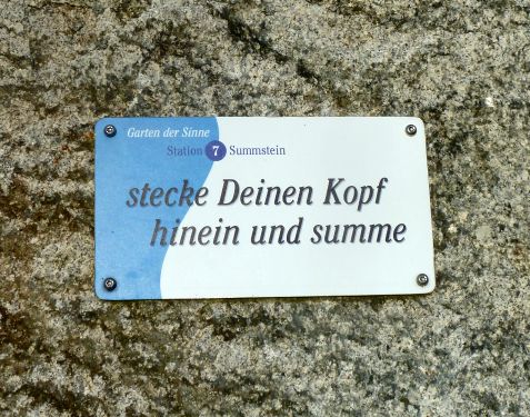 Nach einem kurzen Anstieg fangen wir oben an der Therme an. Da beginnt der Weg der Sinne.