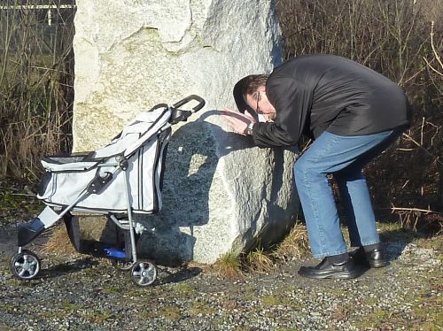 Und dieser Stein will berührt werden, um Kraft zu spenden. Bruno kapierts nicht so wirklich