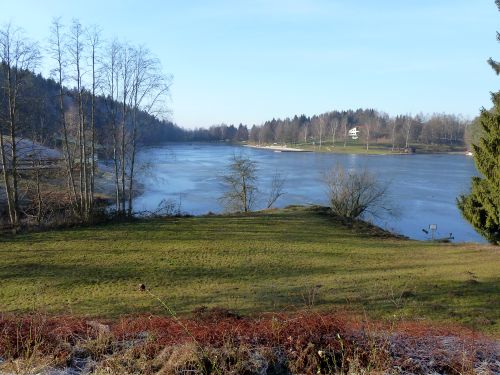 Zuerst schauen wir uns den Platz in Neuhaus am Inn an, aber da ists uns zu einsam und wir fahren weiter nach Eging am See. Kaum sind wir auf der Autobahn geraten wir in Dicknebel und sind froh, wieder auf die Landstraße abzubiegen. Aber der Nebel bleibt, und erst auf 400 m Höhe wirds langsam heller.