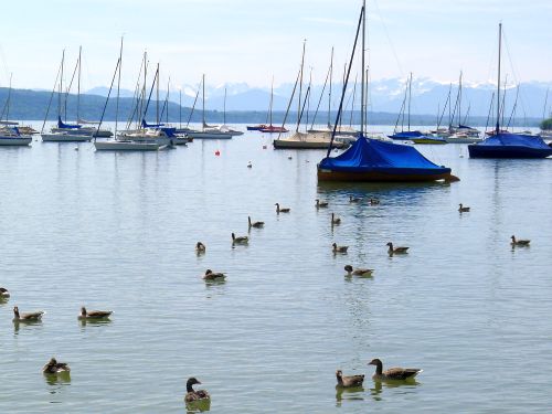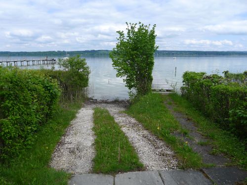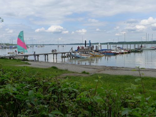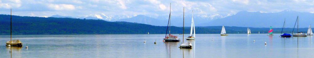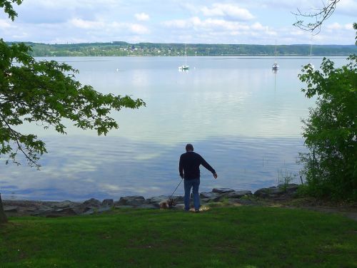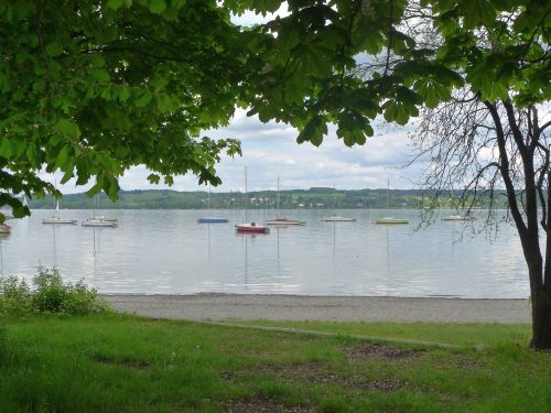 Jetzt stehen wir doch in Utting am Ammersee und alles ist gut. Wir sehen sogar in der Ferne schneebedeckte Berge.