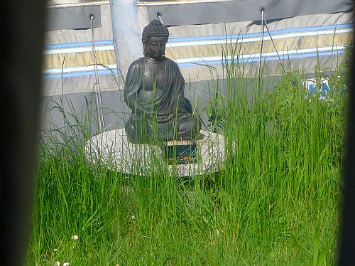 Zurück auf dem Campingplatz erleben wir einen Schock. Ganz München ist inzwischen angereist und baut auf und hämmert und kreischt und fährt Fahrrad übern Kiesweg und freut sich übern Sonnenschein.