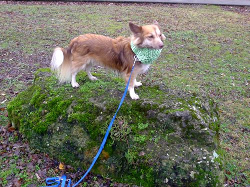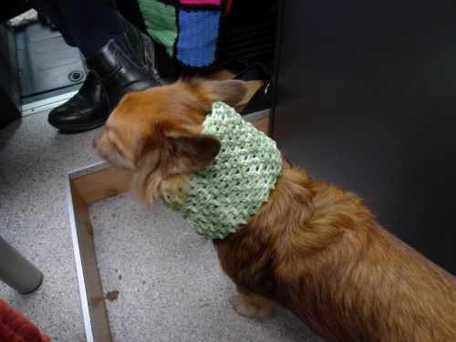 Aus meinem hellgrünen Schal hab ich ihm einen schönen Halswärmer gemacht. Wenn das nicht hilft, weiß ich nicht, was noch helfen soll. Und die Farbe scheint auch ok, zu sein.