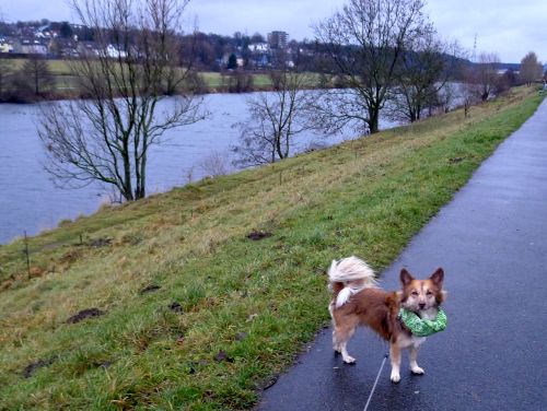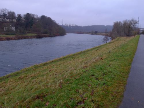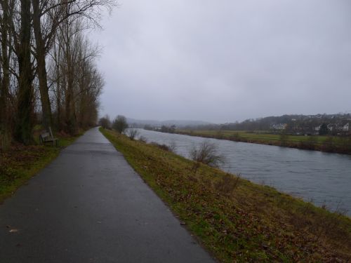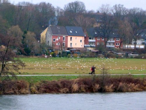 Aber dann kommen wir zu unsrem Friede-Freude-Eierkuchen-Gefühl. Wir gehen im Nieselregen an der Ruhr lang.