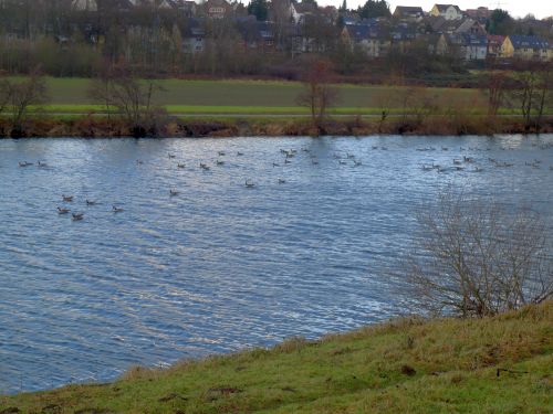 Wind begegnen uns Möwen und Gänse und Carl gehts besser, als wir den Leinpfad