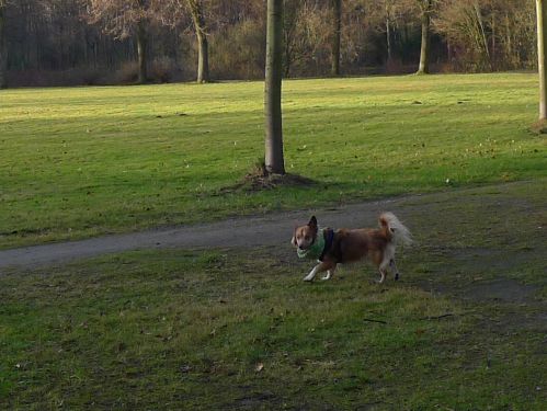 Nachts hats geregnet, aber jetzt sieht die Welt recht freundlich aus. Unser Morgengassi machen wir im Hundeauslaufgebiet, denn ich denke, dass Carl duchs Antibiotikum am 4. Tag nicht mehr ansteckend ist. Er hustet seit gestern auch nicht mehr.