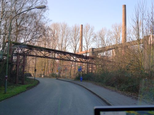 Ganz weit draußen scheints noch mehr Parkplätze und noch mehr Zechengelände zu geben, aber wir haben jetzt keine Lust mehr auf Verarsche, denn wenn wir so weit draußen parken sollen, bräuchten wir ewig, um vorne aufs Gelände zu kommen.