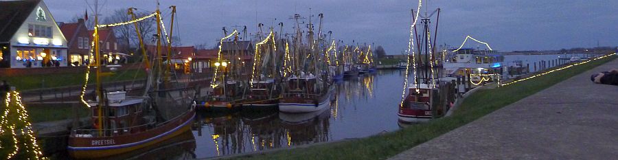 Unterwegs holen wir noch Gas, tanken, schauen bei Lidl und Edeka vorbei, und rechtzeitig zur Kaffeezeit landen wir in Greetsiel. Gottseidank ists noch hell, denn unterwegs haben wir bemerkt, dass unsre Scheinwerfer nur noch Standlicht können. Unser Auto kommt wohl in die Jahre, wie ich auch.