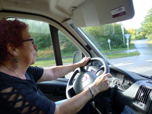 Während Peter die Außenarbeiten erledigt, soll ich das Womo mal kurz zur Seite fahren. Und als ich da so hinterm Steuer sitze, denk ich, dass es ganz gut wäre mal wieder zu fahren. Und das hab ich dann auch einfach gemacht, und es war eigentlich wie früher. Ich kanns noch.
