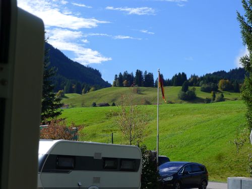 Eieiei ists hier schön. Zwar sind die Berge noch nicht alle sichtbar und es regnet noch, aber was ich so sehe ist sooo viel grün, ganz anders grün als bei uns, sooo schön hügelig, sooo viel Wasser, sooo viel Allgäu mit ganz viel Bimmelimmelim. Mehr Allgäu geht eigentlich nicht. Wir sind mitten drin.