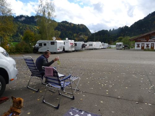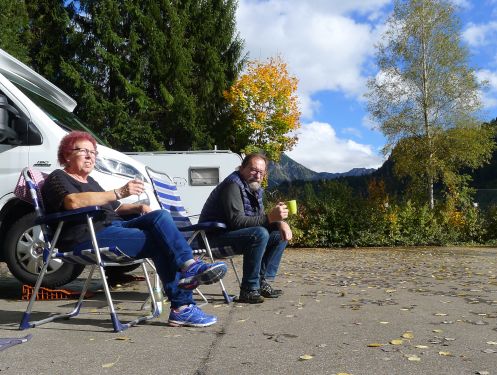 Den Rest des Nachmittags verbringen wir vorm Wohnmobil in der Sonne und genießen die Sicht auf die Berge.