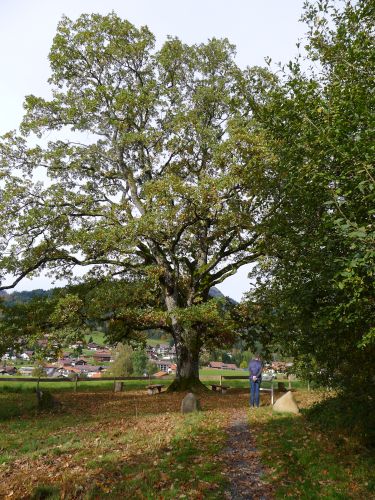 Zuerst kommen wir an einen Kraftort mit einer riesigen Eiche