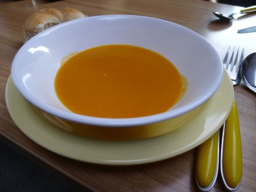 Heute gehen wir nicht in die Hirschsprungstuben, denn heute will ich mich satt essen. Es gibt erst mal ein feines Karotten-Mango-Kokossüppchen mit Ingwer,