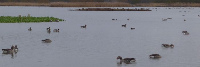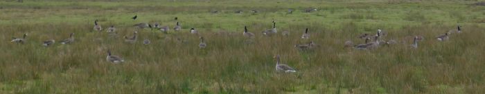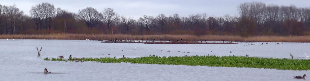 Und jetzt gehen wir um das erste Rieselfeld. Und hier ist was los, man kreischt und schnattert und macht richtig Spektakel. Und es ist ein Kommen und Gehen, also Fliegen.....