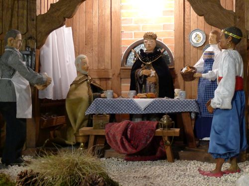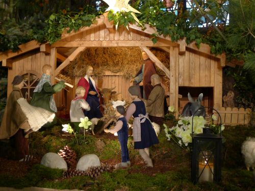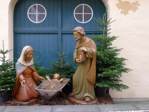 Vor der Kirche ist grad ganz schön viel Betrieb, auch Maria und Josef stehen lebensgroß vorm Hoftor, und ich denke, es lohnt sich vielleicht mal reinzugehen. Richtig gedacht. Hinterm Altar ist Bethlehem aufgebaut.