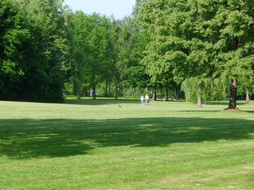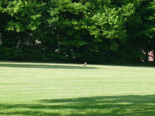schauen den Rehen in der Wiese zu, und entdecken im Kurpark sogar einen Hasen.