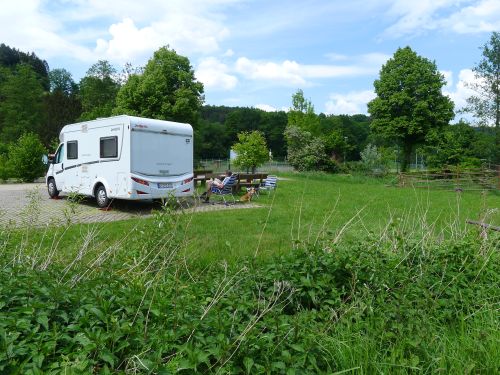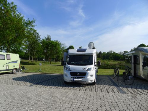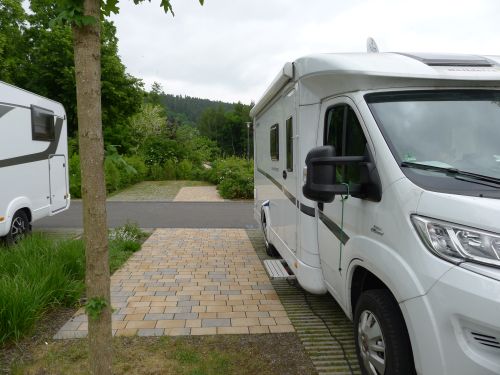 Nee, hier bleiben wir auch nicht, denn da kommt keine Urlaubsstimmung auf. Der Stellplatz liegt an einem Werksparkplatz direkt an der Straße. Und so landen wir in Bad Salzungen. Hier waren wir vor ewiger Zeit schonmal, und jetzt gibts hier einen wunderschönen Stellplatz.