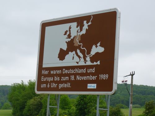 Grenzen überwinden, und die Brücke der Einheit über die Werra.