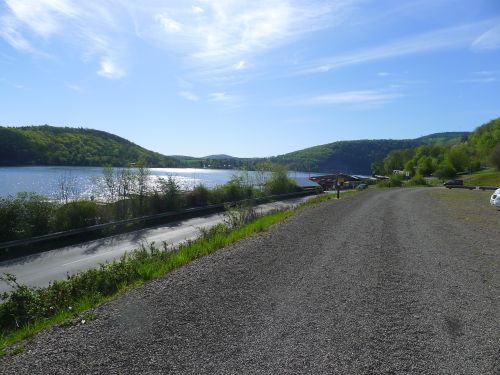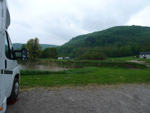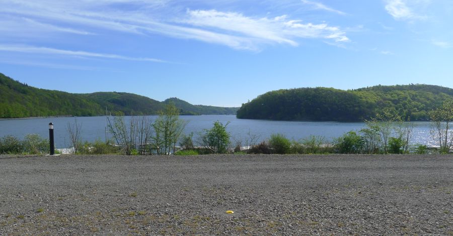 Aber kalt ists geworden über Nacht. Draußen hats 5° und wir hatten keine Heizung an. Carl muss erst mal bei uns im Bett wieder auftauen, der Arme. Nach dem Frühstück fahren wir los an den Edersee, um uns den Terrassenplatz auf der Halbinsel Scheid anzuschauen.