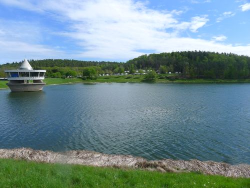 kommen wir noch vor dem Mittagessen auf dem Stellplatz am Twistesee an und erwischen sogar einen Platz in der ersten Reihe mit Blick auf den Überlaufturm mit dem Cafe drauf.