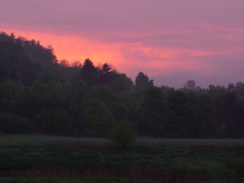 Nein, das ist kein Waldbrand, das ist der Sonnenuntergang. Und die Farben waren tatsächlich so. Es war spektakulär, denn grad hat es noch geregnet.