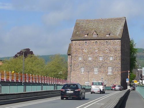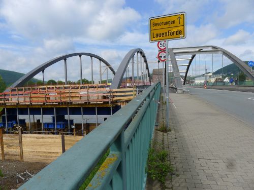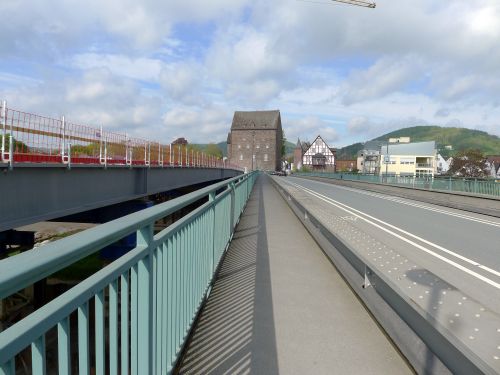 Und dann machen wir uns Gedanken über diesen Neubau der Weserbrücke. Sie wird genau links neben die alte Brücke gebaut, wobei jedoch keine Zufahrt möglich ist, ohne dass historische Gebäude abgerissen werden müssten. Sowohl hüben als auch drüben steht jeweils ein altes Haus im Weg.