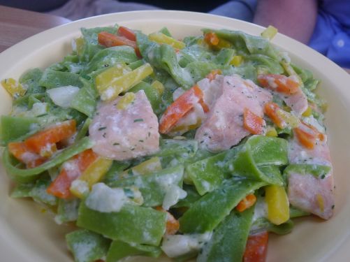 Zum Abendessen gibts Lachs mit Tagliatelle aus der Kühltruhe vom Nahkauf,