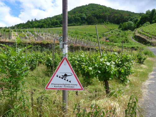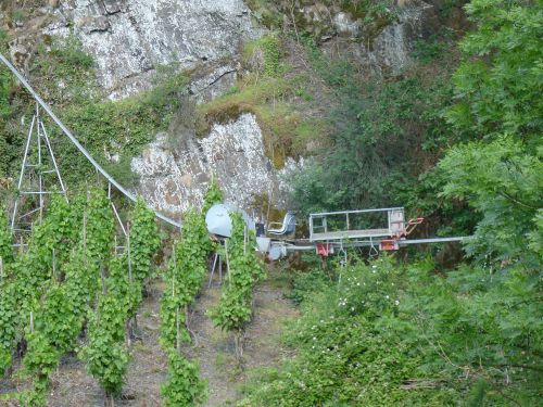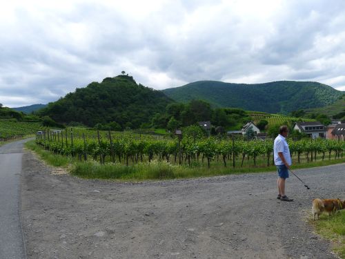 Vorn am Berg der Saffenburg hab ich mal fotografiert, wie die Winzer diese steilen Hänge hoch kommen.