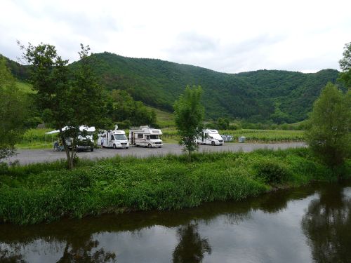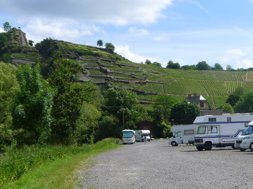 Das Städtchen an sich ist schmucklos, also lohnt nicht. Und der Stellplatz an der Ahr hat leider keinen Strom, denn sonst tät er mir gefallen. Er ist nicht so groß und fast leer, während es bei uns heute wegen des Weinblütenfestes rappelvoll wird.