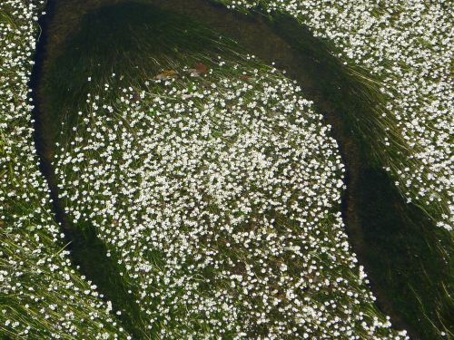 An jeder Spitze der Grasfäden sitzt eine Blüte, die wie ein Gänseblümchen aussieht.