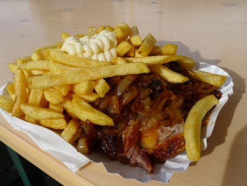 Wir sitzen bei unsren Nachbarn mit dem Selbstausbaumobil am Tisch, und zum Abendessen gibts heute ungesunden aber sehr schmackhaften Spießbraten mit Zwiebeln. Schmegge musses. Während die Nachbarn die zweite Flasche Wein holen, machen wir uns wieder auf den Heimweg. Hab ja Carl versprochen, dass wir in einer Stunde wieder da sind.
