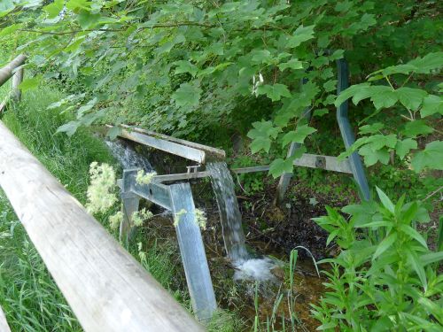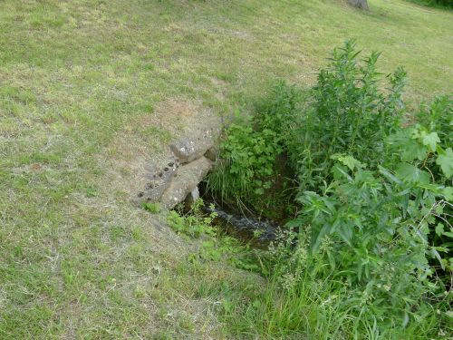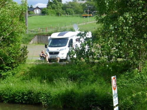 Kanalisiert fließt sie in den Teich oberhalb des Stellplatzes,