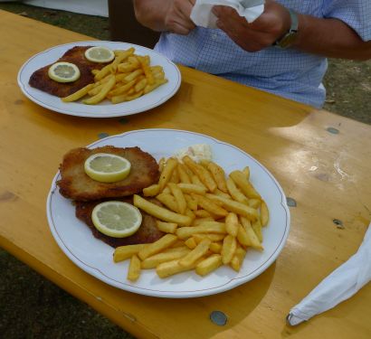 nämlich recht trockene und geschmacksneutrale Wiener Schnitzel, der Spießbraten war leider schon all. Auf dem Rückweg teste ich noch Julias Lumix, denn meine hat nen blinden Fleck in der Mitte und kann die Belichtung nicht mehr messen. Und sie braucht ihre grad nicht.