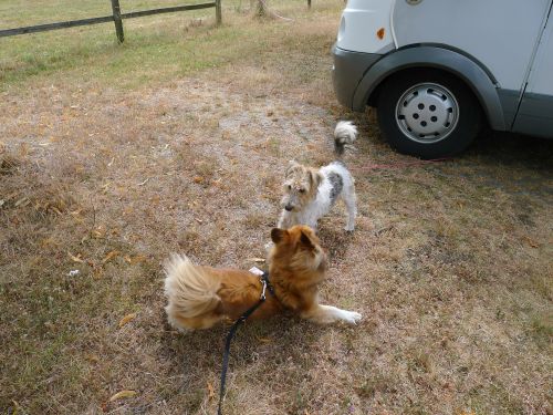 Carl schließt gleich Freundschaft mit dem Nachbarhund. Also ihm gefällts hier. Wir wollen aber erst mal ein Stück laufen und schauen, ob wir den See finden. Sehen tun wir ihn, aber kommen nicht bei. Erst nach nem ordentlichen Fußmarsch.