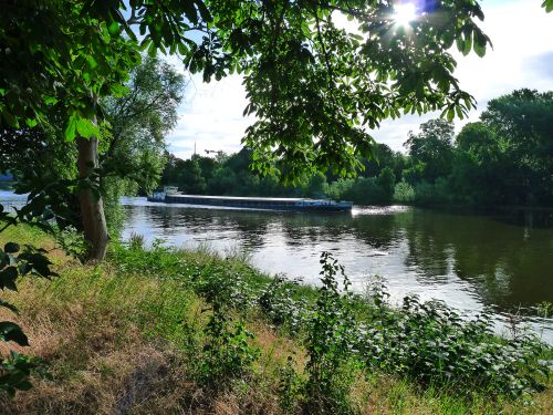 Morgengassi bei etwas verhaltenem Sonnenschein. Hier sehen wir auch die ersten richtigen Schiffe auf der Weser.