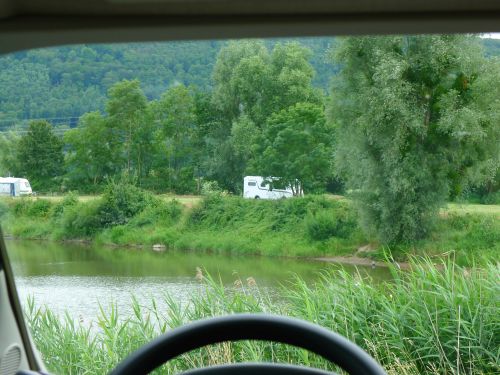 noch ein Stellplatz. Er liegt etwas vom Ufer weg, und wir überlegen noch und