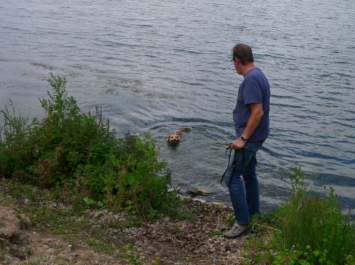 Und dort ist Naturschutzgebiet und Leinenpflicht. Wir lassen Carl bissi schwimmen und das wars. Übrigens bringt Leinenpflicht im Naturschutzgebiet auch nix, denn Carl hat trotz kurzer Leine mal wieder am Wegrand ruckzuck ein Mäuschen gekillt.