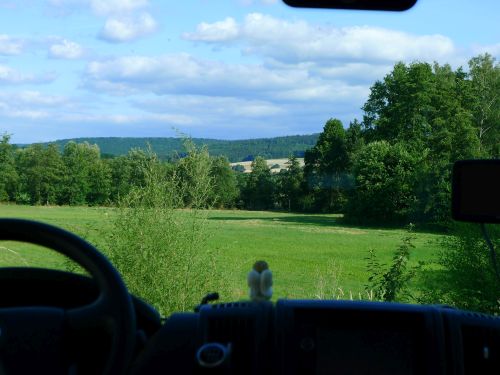 Wir haben unverbaubaren Blick auf den Spessart. Außerdem hat sich die Sonne durchgekämpft. So passt uns das.