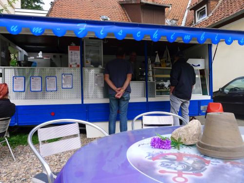 Dabei finden wir einen Fischwagen und essen erst mal.